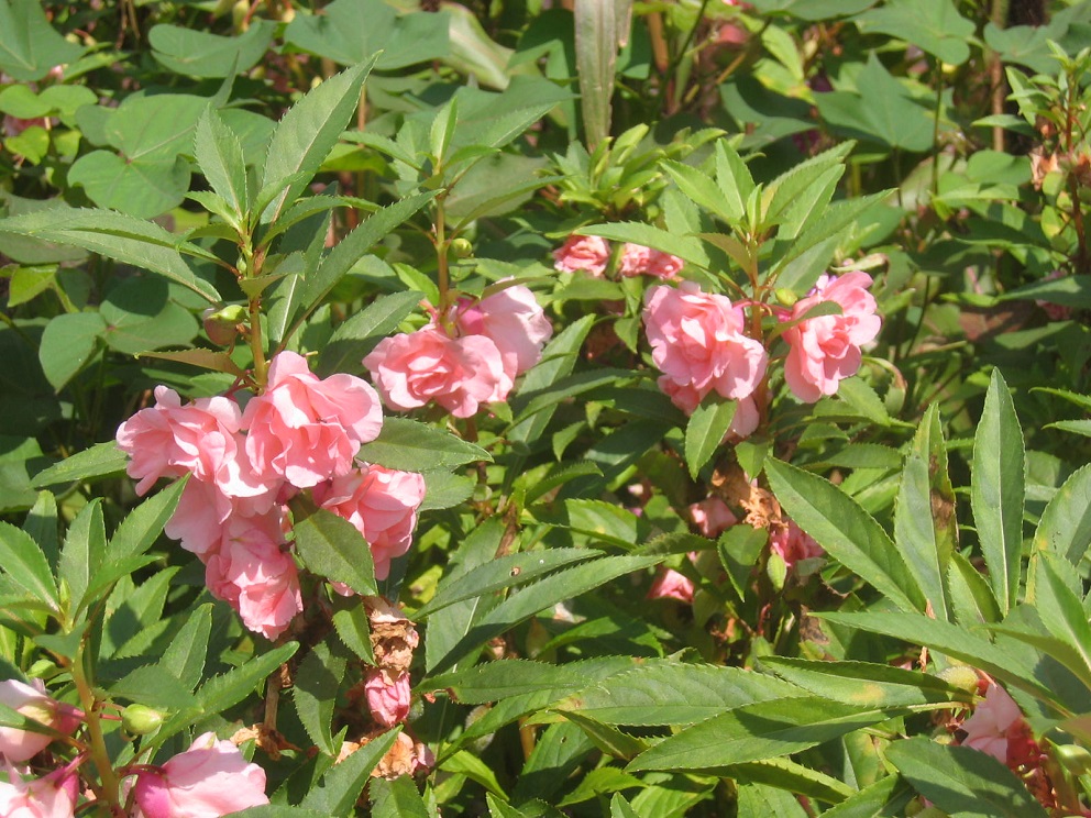 釣舟草科の花で、学名を(Impatiens balsamia)という。Impatiens(インパチェンス)はラテン語の「impatient(我慢できない)」が語源で、種子が熟すと、勢いよくはじけ飛ぶことから。