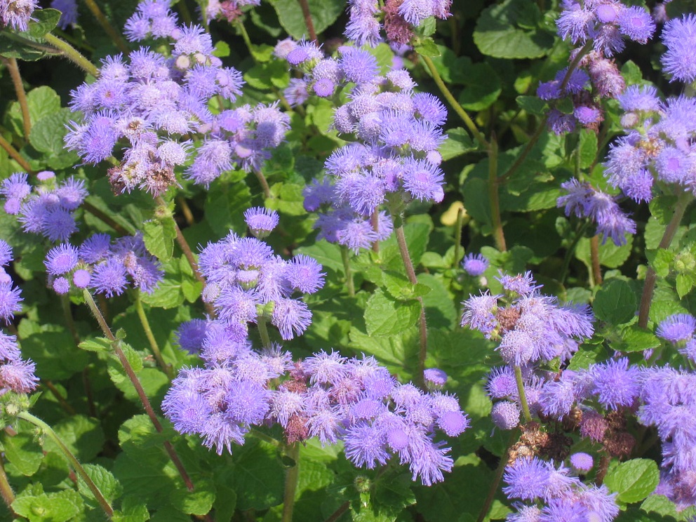 アゲラタム(Ageratum)はギリシャ語の「ageratos(不老)」が語源。(花期が長い・・・)。別名「カッコウアザミ」は葉が(カッコウ)に、花が薊(あざみ)に似ていることから呼ばれる。
