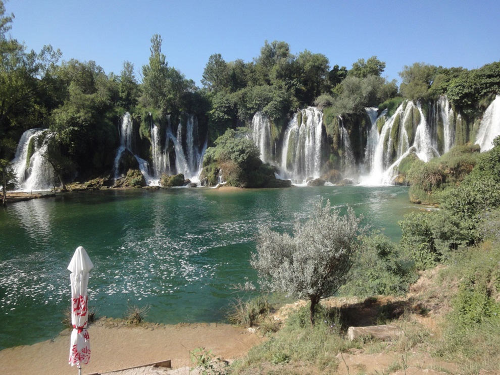 7月6日朝、バスでモスタルのホテルを出発して、クラヴィツェの滝(写真1)を訪れた。