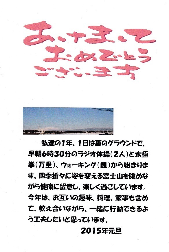 一部の方々には年賀状でご挨拶しましたが、(ご参考までに年賀状を添付しますが・・。)