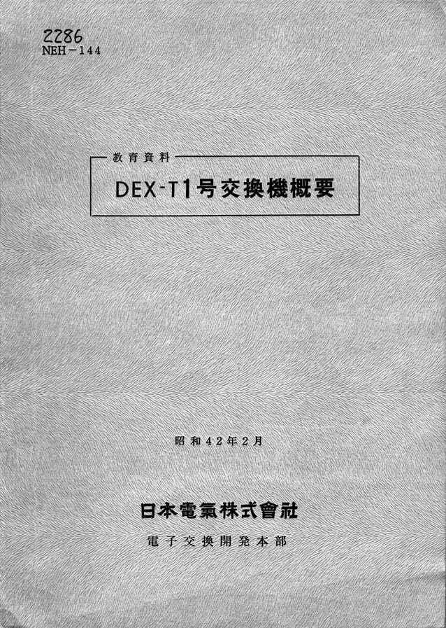 昭和40~41年にわたり最初のデジタル交換機DEX-T1を交換グループと開発し、平衡相互同期装置をK.Iさん、S.Sさんと担当した。その間、研究所のY.Gさんには徹夜も付き合ってもらった。当時はトランジスタ、ダイオードや抵抗の個別部品を使用していたのでお化けの様な装置になった。何しろゲート付きフリップフロップが1枚のプリント板に1ケか2ケしか入らぬ時代である。また交換グループとは畑が違うので当然実装も異なるが、驚いた事に架端子番号が伝送では上から1~32交換では下から0~31であり、架間ケーブル端子を逆にするだけでなく、1つずらす必要があった。