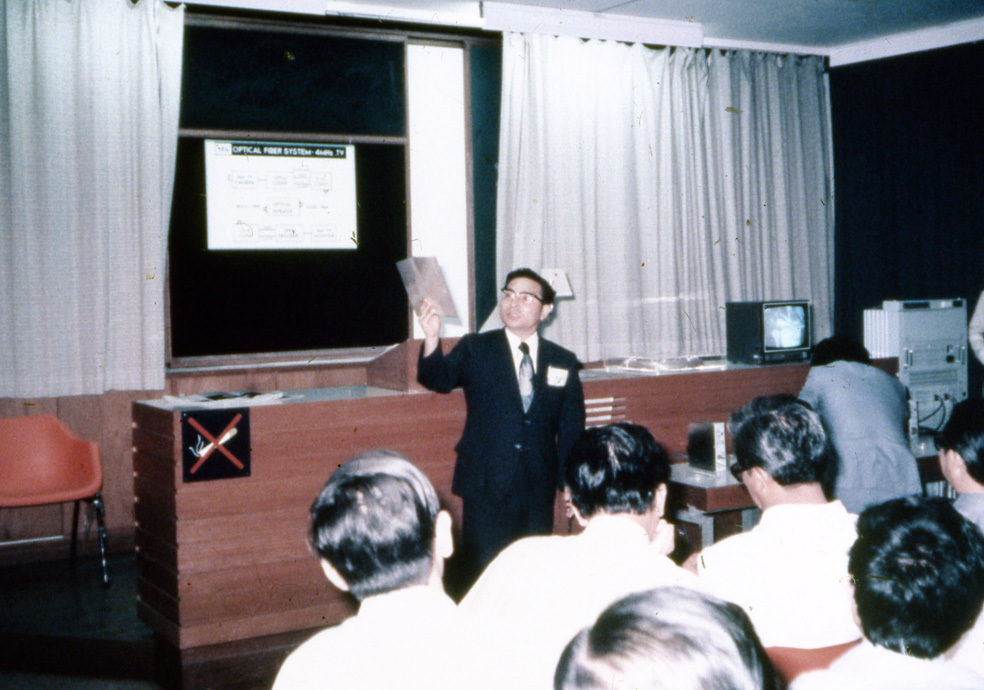 昭和50年4月から約5年間私は伝送事業部長付としてラインを外れ、直属の部下無しで飛び回った。S.O事業部長に担当業務を5つ程書いて戴いたが、その一つが光通信の開発であった。既に昭和49年3月に光通信の開発が決定され、4月からデバイス開発部のK.T担当が1年間、研究所の量子研のT.U部長、S.S課長、A.U主任の所に社内留学した。7月にデバイス開発部に光グループが結成され、S.N主任、K.D担当が開発を開始した。