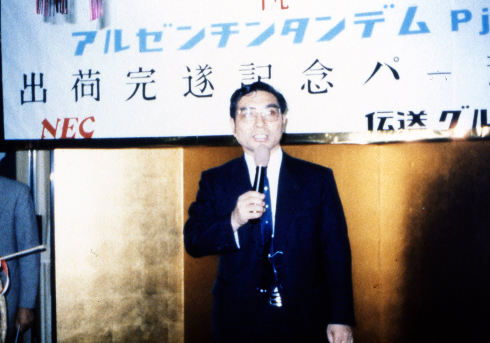 様々な努力が実って昭和55年3月アルゼンチン・タンデムを受注した。ブエノスアイレスでデモする時はT.Y部長が出張したが、ジュネーブで開催されたテレコムで展示する光装置の予備機を転用したので背水の陣であった。幸い現地で接続を完了すると直ちに動作したので、通信庁幹部がいたく感激され当初計画より大幅に拡大された。これまで数システムが単位であったが、140MBと34MBで900システムも受注したので大変だった。