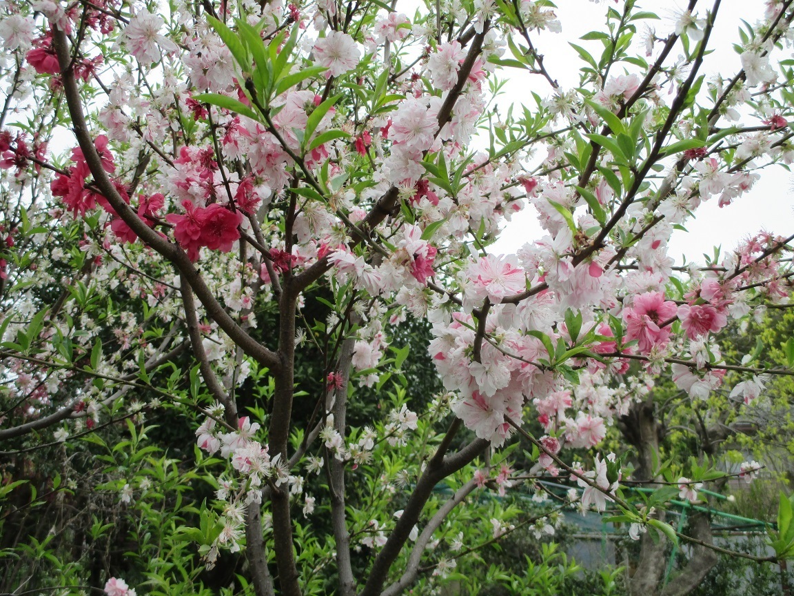 ●五色桃:4月10日撮影、宮前区土橋6丁目内にて。