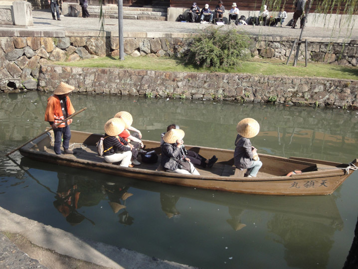 大原美術館を見学してから、倉敷川に沿って南下して倉敷美観地区をゆっくり見物することにした。(写真6)倉敷川を小舟で観光している人達の上部の川岸では、スケッチに熱中しているグループが写っている。