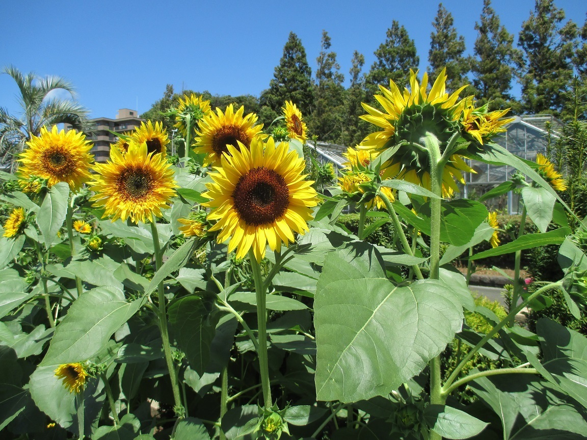 ●ゴッホのひまわり●ゴーギャンのひまわり●ひまわり(ルビー):向日葵についてはこのブログで既に4回も登場しています。今回は新種を取り上げました。Webで「個性あふれるひまわりをご覧になりませんか」という情報を発見して、大船植物園フラワーセンターへ行きました。開花は7/下旬~8/中旬だというので、8月5日に行きました。そこで、上記の3種のヒマワリに巡り合うことが出来ました。この他に、「モネのヒマワリ」、「バイカラーミックスのヒマワリ」も植えられていましたが、残念なことにまだ開花していませんでした。またの機会に紹介しようと考えています。