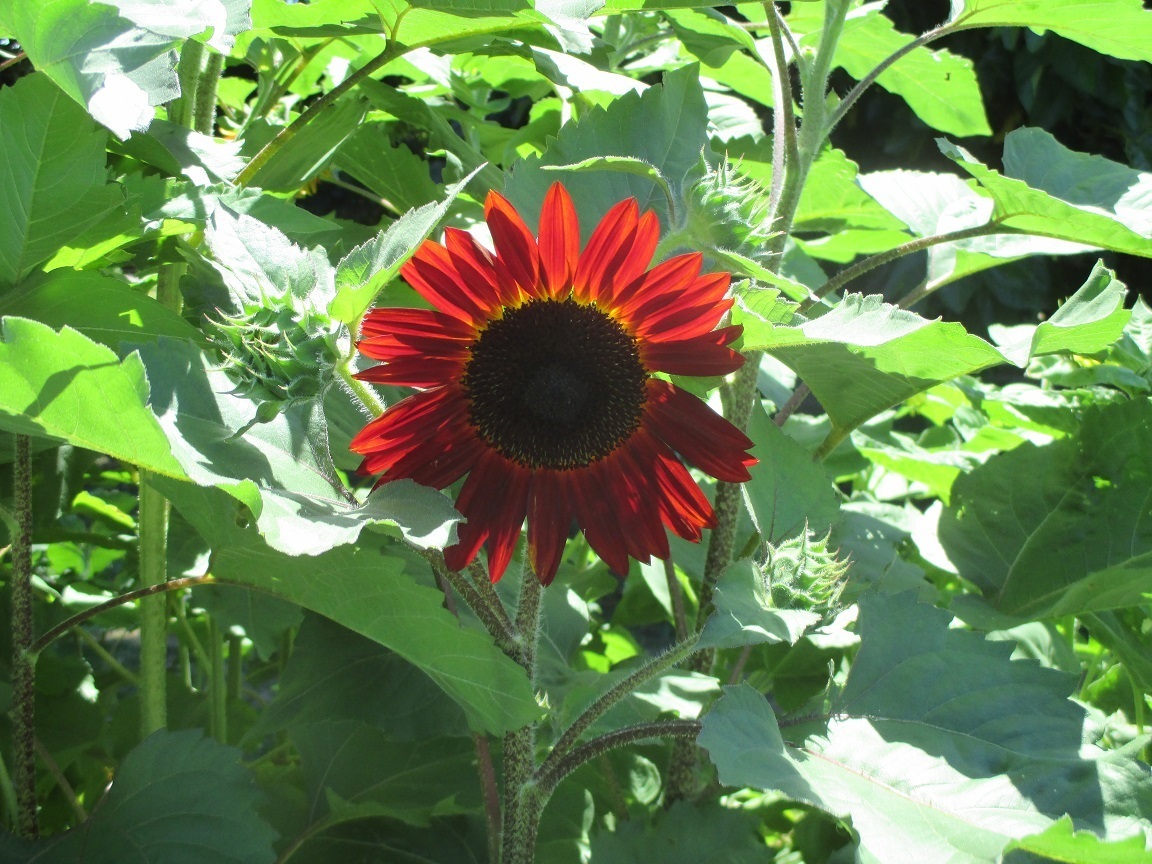 向日葵が太陽を向くのは蕾の時期だと前に書きましたが、ひまわり(ルビー)を見るとよくわかります。完全に太陽を背にしています。
