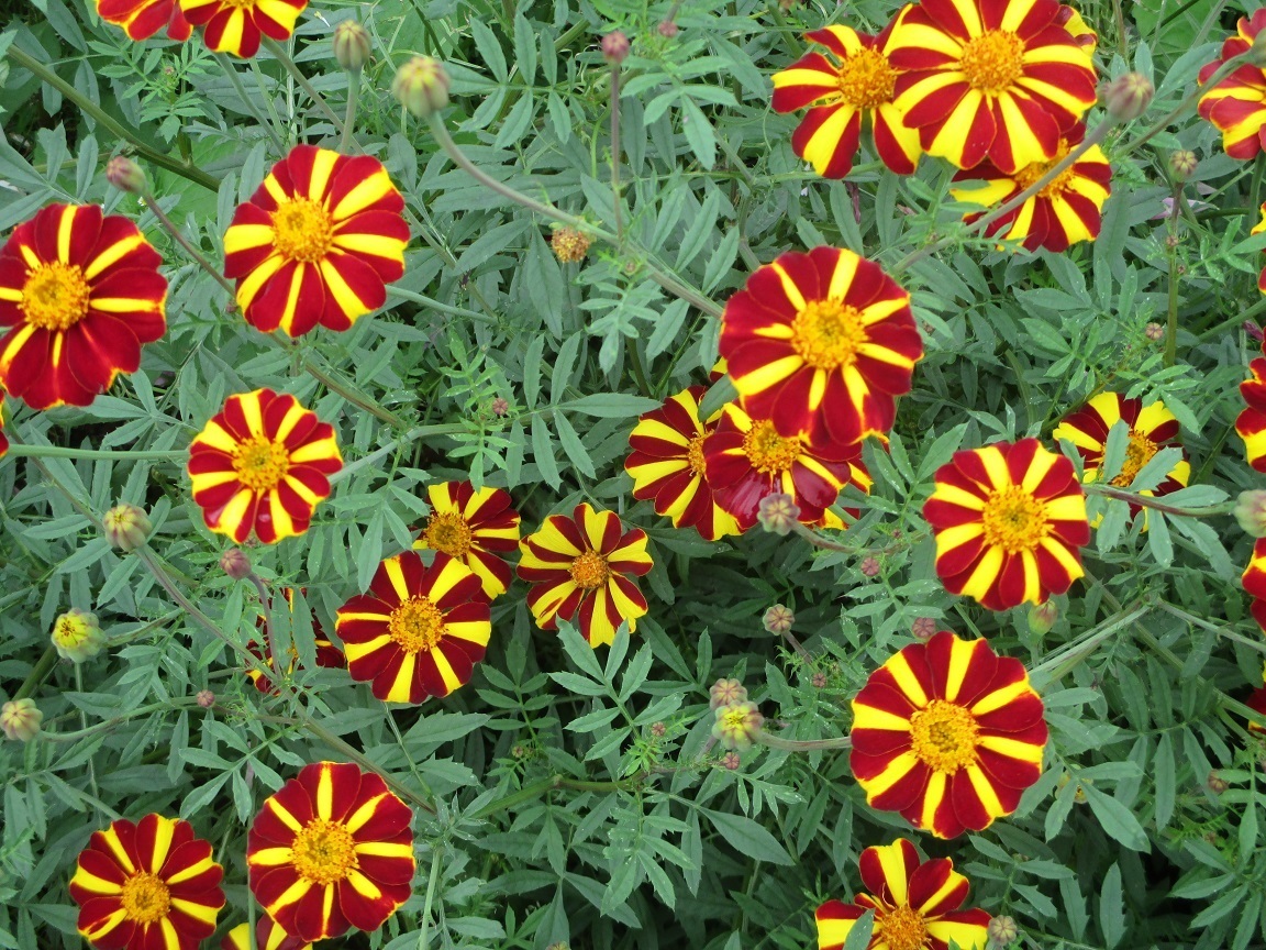 ●マリーゴールド(フレンチタイプ):Webで検索したら、この花の写真とは違う花が多種類出てきましたが、この写真の花は鮮明に特徴があるので、掲載しました。マリーゴールドの花言葉は「信頼・悲しみ・絶望・嫉妬・変わらぬ愛・濃厚な愛情」などです。