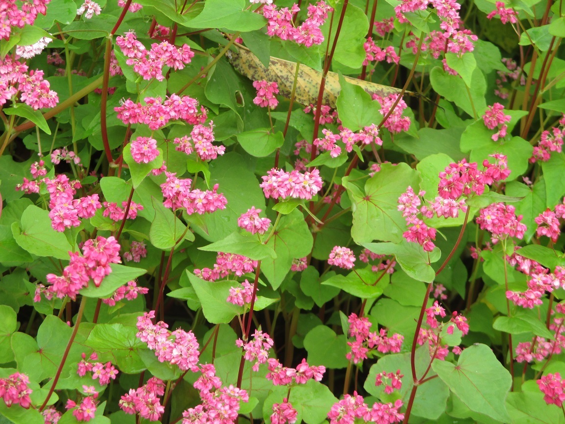 ●そば(赤花種):原産地は中国の奥地雲南省からヒマラヤにかけて。標高3800mのところから1987年に信州大学の名誉教授が持ち帰り、開発したそばの実は「高嶺ルビー」と名付けられた。このそばの味は普通のそばと違い少し癖があるのと、こしが強く、ゆでてすぐ食べないとくっつきやすいとのことです。