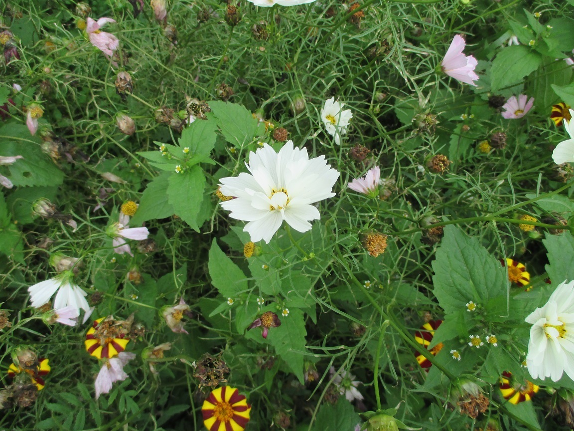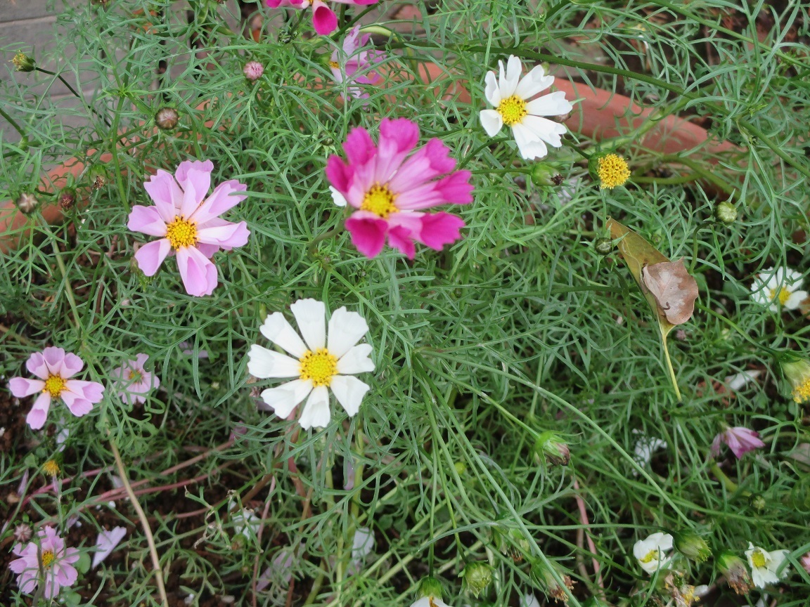 このブログで最初に取り上げた花は、コスモスでした(2008/10/20付)その後2010年までに3回掲載しました。また2009年にキバナコスモスとウィンターコスモスを掲載しました。今回紹介するコスモスはこれらと総て別種です。コスモスにもこんなに多くの種類があるのかと、びっくりした次第です。