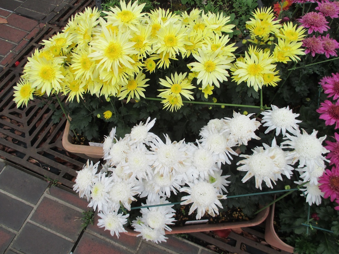 ●丁字菊:写真の黄色の菊は「金光丸」、白色の菊は「精興の香」という名前が付いていました。