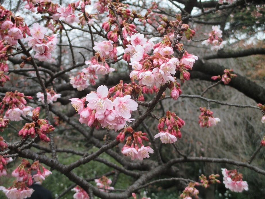 このブログで寒桜を紹介したのは、4回、寒桜の一種である熱海桜を含めると、合計8回紹介しました。しかし撮影日を見ると、1月:2回、2月:5回、3月:1回でした。今年の1月は暖冬の部類に入るのかなと思えてきます。この写真はまだ咲き始めのようですが・・・。