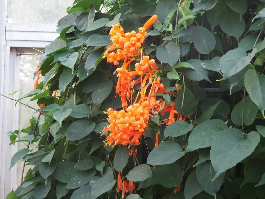 ●ピロステギア・ウェヌスタ:ノーゼンカズラ科の花でブラジル・パラグアイ原産。沖縄ではカエンカズラ(火焔葛)と呼ばれる。英名は(フレーミング・トランペット)。