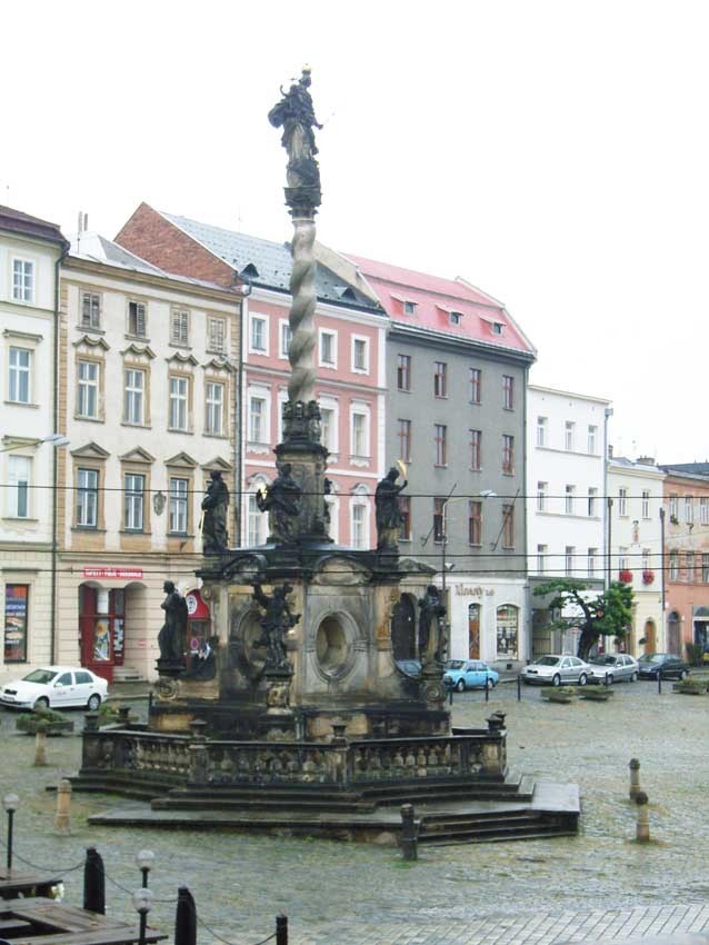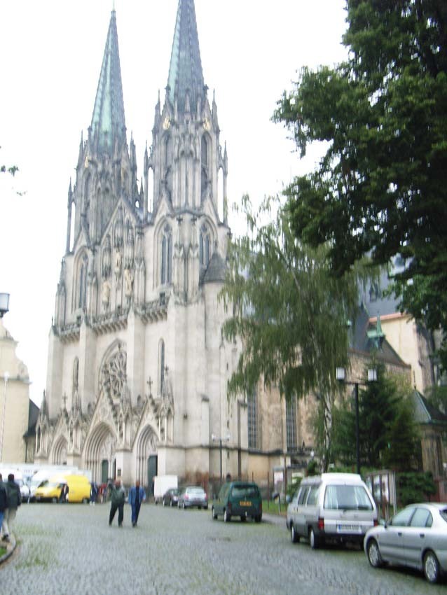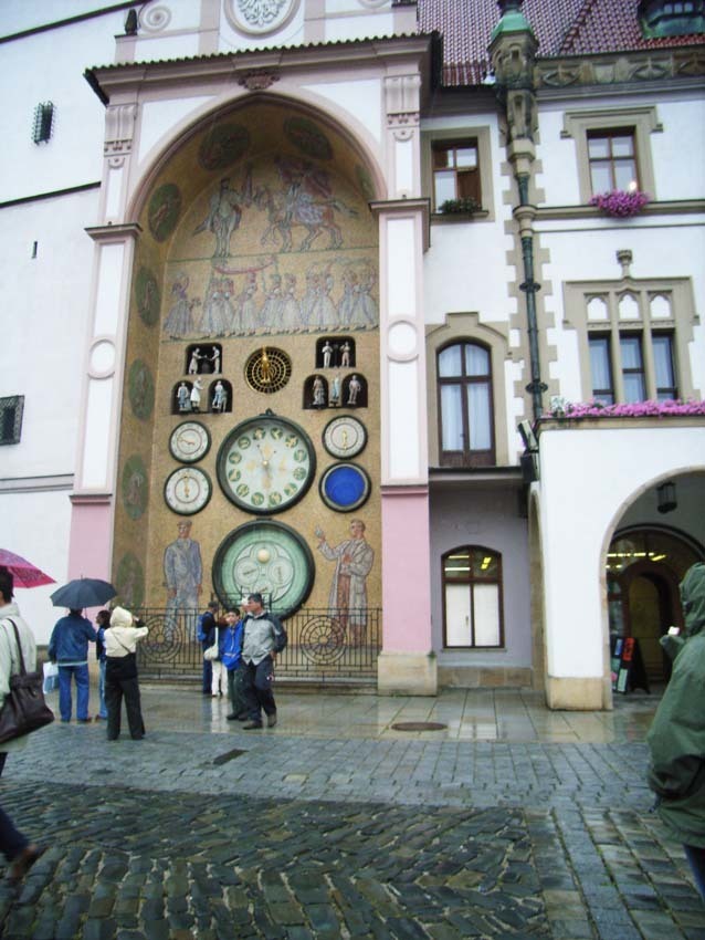 8月15日朝、ブルノ駅から列車で北東に向かい、約1時間半でオロモウツ駅に到着した。トラムに乗り西に進み、旧市街の中心であるホルニー広場を訪れた。立派な市庁舎の尖塔(写真4)には、4面に時計があるが、隣接して有名な仕掛け時計(写真5)がある。この広場には、世界遺産に登録されている聖三位一体の碑(写真6)や、ヘラクレスの噴水、カエサルの噴水など多くの見所がある。この広場のすぐ南東にドルニー広場があるが、ネプチューンの噴水やジュピターの噴水がある。ここから市街の北東部に進み共和国広場に来たが、ここでもトリトンの噴水があった。更に北東に進み2つの巨大な尖塔のある聖ヴァーツラフ教会(写真7)を訪れた。隣接するプジェミスル宮殿には覆いが掛かっており、改修中の様で残念であった。オロモウツ駅を15時40分に出発して、ブルノ駅には17時10分に到着した。