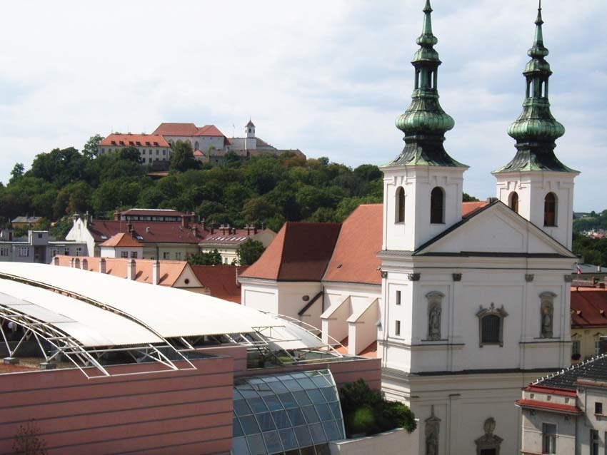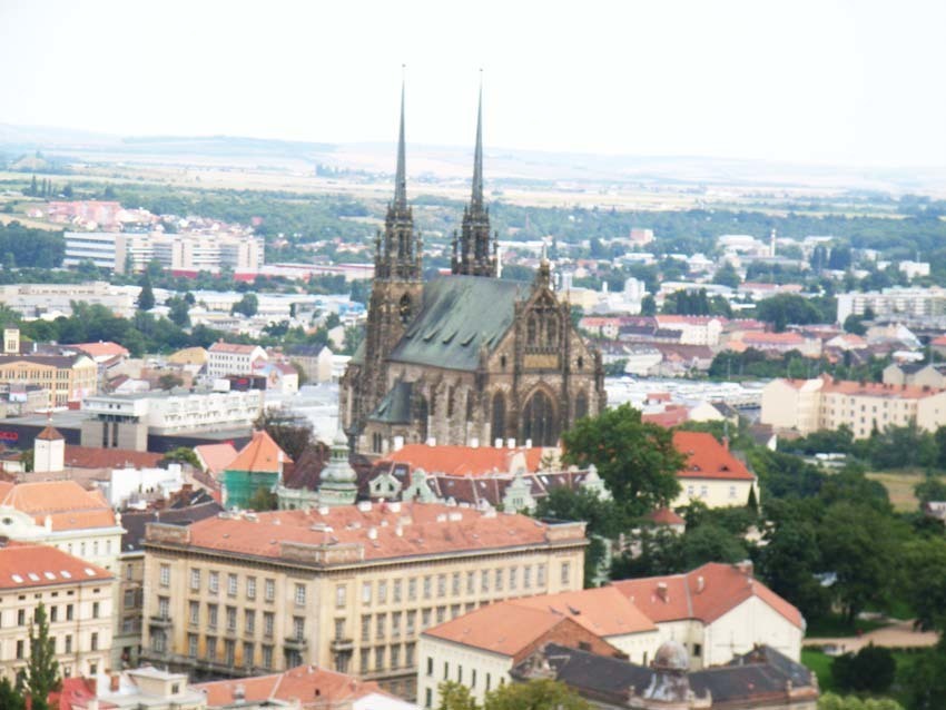 ブルノはチェコ第2の大都市で、トラムに乗って市街の西北部の丘にあるシュピルベルク城の麓にあるホテルに到着した。大急ぎで昼食を済ませ、旧市庁舎を訪れた。通路の天井には、ブルノのシンボルであるワニの剥製がぶら下がっていて驚いた。早速、塔に登ってブルノの市街を一望した。北西を眺めると、近くに聖ミハル教会があり、遠方の丘にシュピルベルク城が見える。(写真1)南を眺めると聖ペテロ聖パウロ教会が現れ、、市街を威圧するように聳えていた。(写真2)塔を降りて、北西に進み、丘を登ってシュピルベルグ城を訪れた。(写真3)ここからも市街を一望できるが、ブルノ市博物館にもなっている。