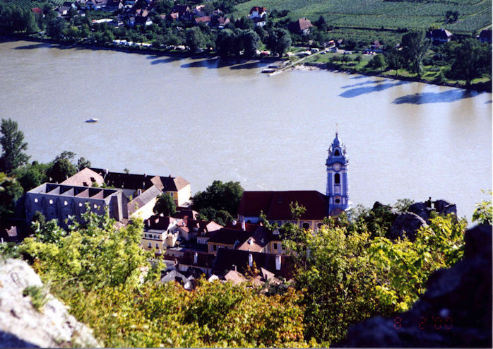 ブドウ畑の間を通り抜けて、丘の上にあるクエンリンガー城跡に登った。ドナウ川から眺めた時は、容易に行けると思ったが、意外に傾斜が厳しくて、息も絶え絶えになりながらようやく頂上に到達した。ここからドナウ川を見下ろすと、それまでの悪戦苦闘はすっかり吹き飛んでしまった。(写真9)
