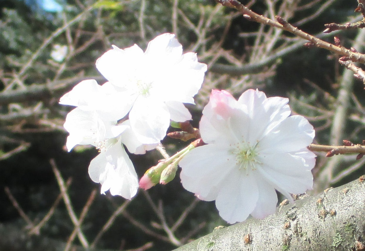 江戸彼岸桜と豆桜の交雑種といわれる小彼岸桜の園芸品種だそうです。花言葉=「神秘な心・寛容」