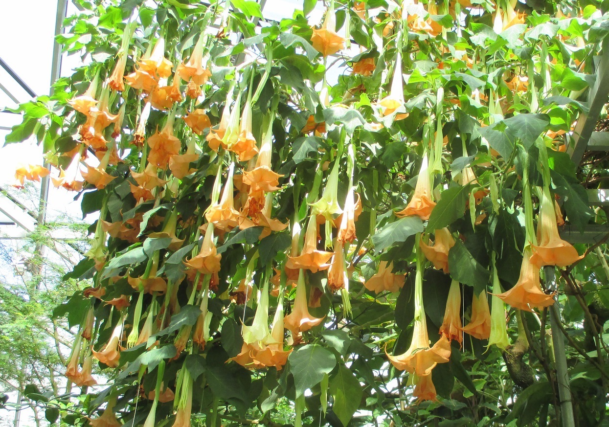 ●コダチ朝鮮朝顔(木立朝鮮朝顔):2009年10月11日号の本ブログで、朝鮮朝顔として掲載しましたが、正式には「木立朝鮮朝顔」と言うようです。6~7月頃に咲くものと、9~10月頃に咲くものがあるようです。花色も白、ピンク、橙、黄といろいろあるようです。中南米、インド地方原産。有毒植物であるので要注意。