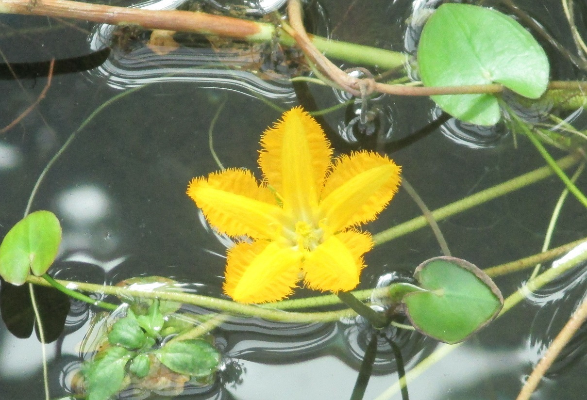 ●アサザ:2011年8月1日号の本ブログで掲載済みで、再掲です。浅い水辺に生えることから「浅く咲く」から、また、「朝早く咲く」→「朝咲」→「あさざ」との説もある。水質汚染で絶滅が心配されていて、準絶滅危惧種に指定されている。