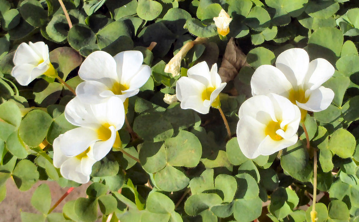 ●オキザリス・プルプレア:別名(フヨウカタバミ)。原産地=南アフリカ。カタバミ科の花。花色は(紅、赤、桃、黄、白、紫、橙)など豊富にあるようです。3月12日の誕生花。花言葉=「輝く心」。