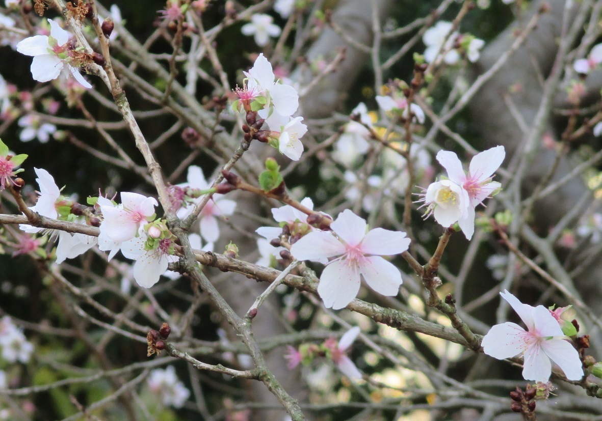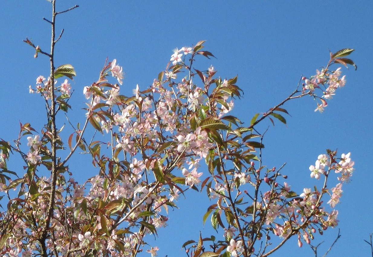 ●冬桜:2012/2/1と2016/11/1の本ブログに掲載済みで、再掲です。マメザクラとヤマザクラ、オオシマザクラ等との雑種と考えられています。(群馬県鬼石町の桜山公園で植栽されている)三波川冬桜です。