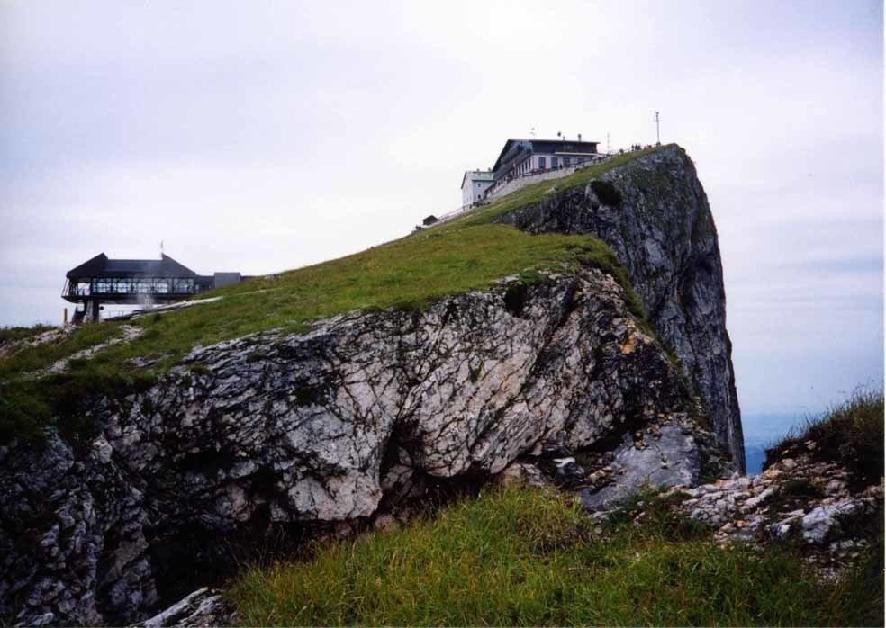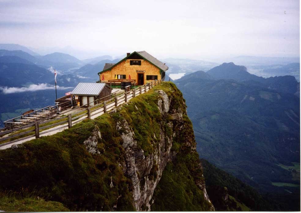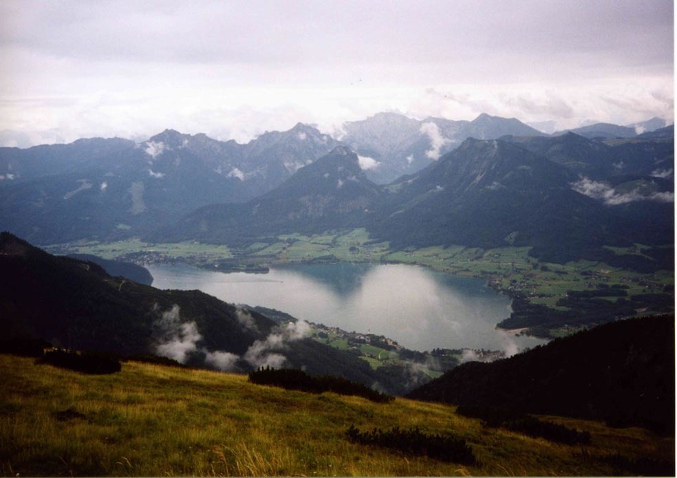 シャフベルグ山頂で過ごされた一日は素晴らしい体験だったろうと思います。私がこの山に上がったのはハルシュタットの帰途で、3時ごろの汽車で山頂へ。ホテルで夕食をして最終便で下山しました。夕陽に映えて山の北側に横たわる二つの湖、AtterseeとMondsee(写真5)の美しさはいまでも私の瞼に残っています。
