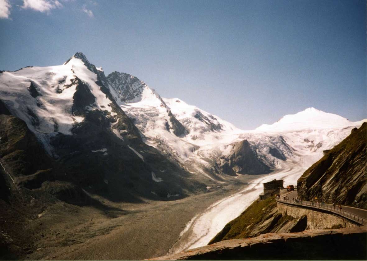 午前中は、ツェル・アム・ゼーの湖畔を散策した。ようやくバスに乗り込んで、約2時間でフランツ・ヨーゼフ・ヘーエに到着した。(写真1)途中アルプス越えの眺めは素晴らしかった。初老の運転手は親切に片腕を上げて指差しながら、次々に現れる山々の説明を丁寧にして下さった。しかし、連続するヘアピンカーブから眼下を見下ろすと、物凄い氷河が待ち受けており、説明は程々にして、両手で前方を見ながら、運転して欲しいというのが本音であった。無事フランツ・ヨーゼフ・ヘーエに到着した時はホッとした。ここでの滞在時間は、3時間短縮されたが、展望台から眺めたオーストリア最高峰のグロースグロックナー(3,797m)と、パステルチェ氷河は強烈な思い出となった。最終バスに乗り約50分でハイリゲンブルートに到着した時は既に薄暗くなっていた。
