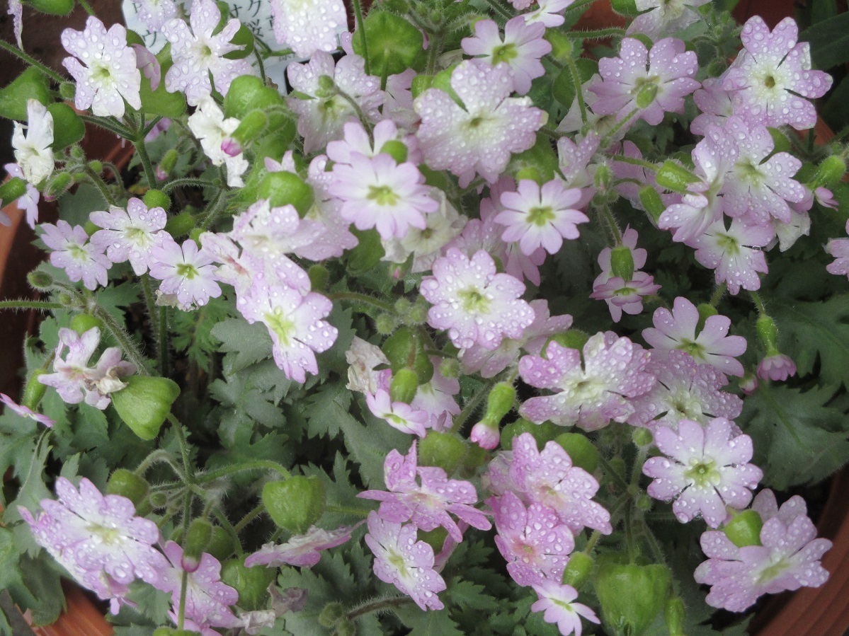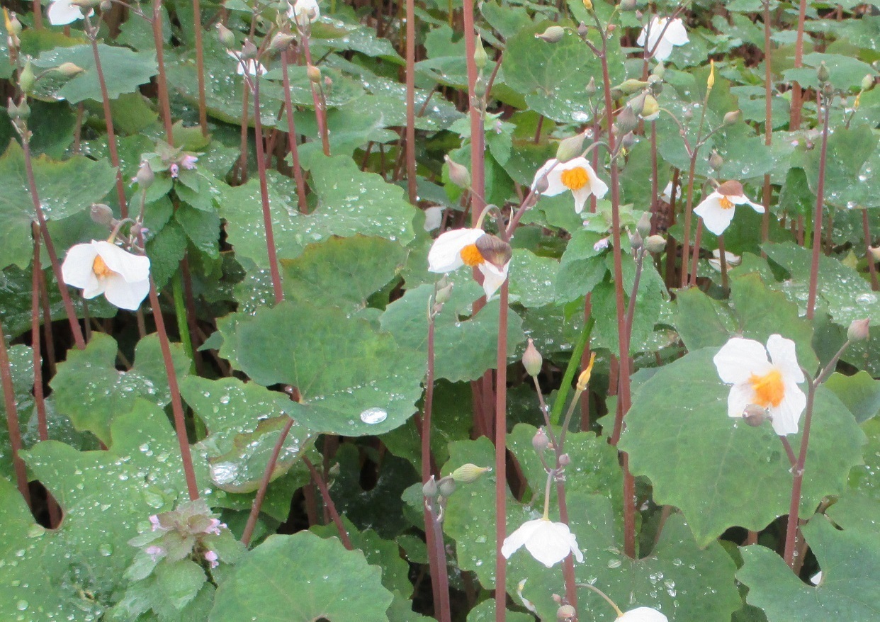●しらゆきげし:別名「スノーポピー、コチョウカ(胡蝶花)」:中国東部地方原産。5/5の誕生花。この写真にも葉に水滴が付着しています。