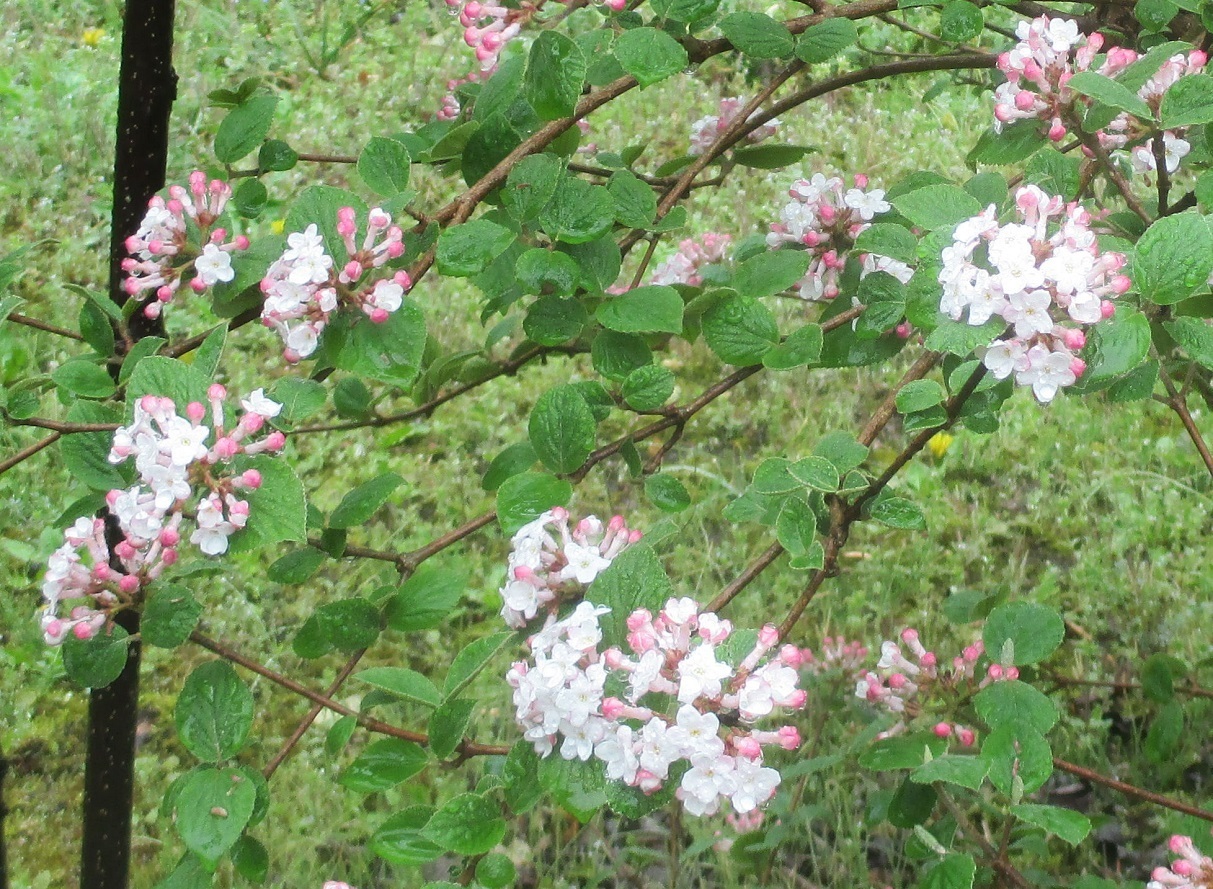 ●ちょうじがまずみ(丁子莢迷):花がロート状で、横から見ると丁字の形をしていることからの名前。この写真では蕾と開花した花が混在しているようです。色、形、香りともに素晴らしく庭木としても人気が高いようです。