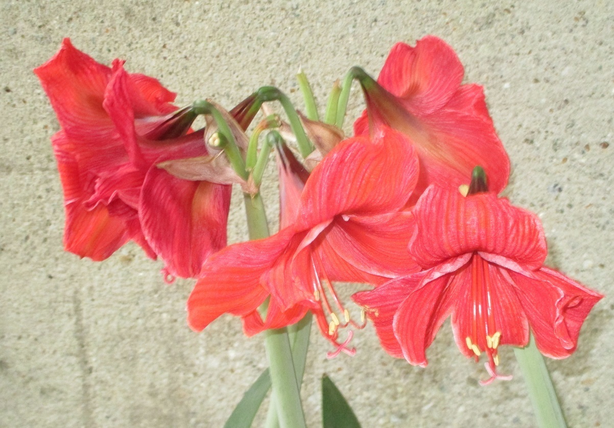 ●アマリリス:この花だけ大船植物園フラワーセンターの温室内で撮影しました。南アメリカ原産。1本の茎に六弁の大きい花を2~4個つける。花色は(白、赤、薄紅、薄黄)などがある。