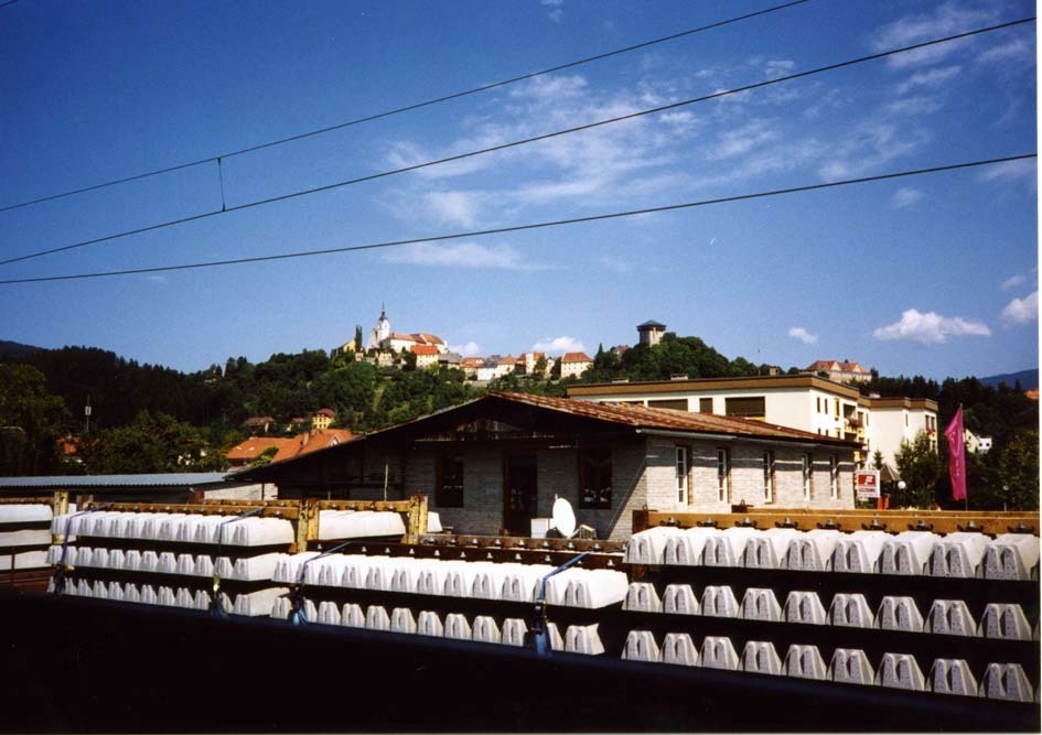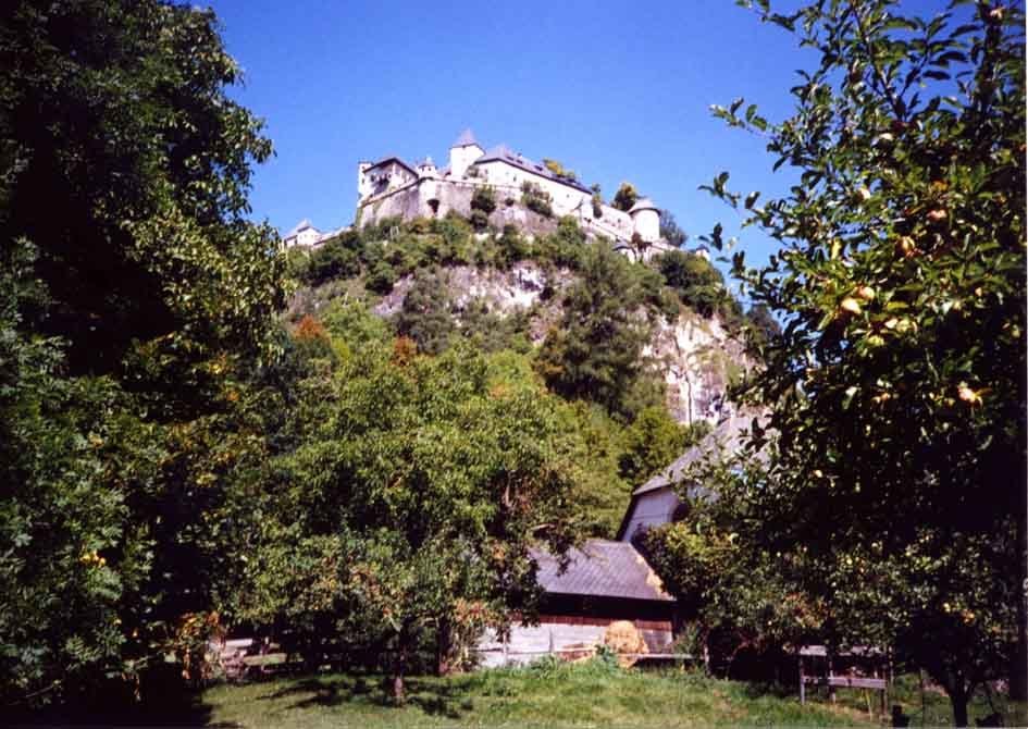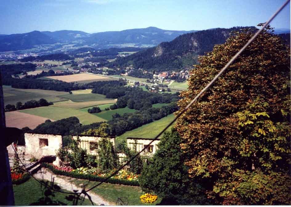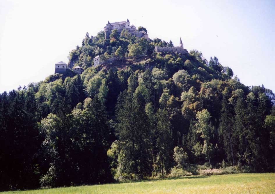 2000年8月18日朝8時20分に列車でクラーゲンフルトを出発し約25分後に巨大城塞ホーホオスターヴィッツ城の遠景が見えてきた。