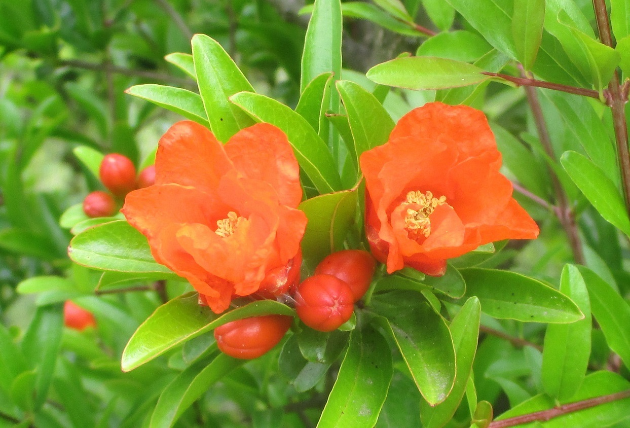 ●ヒメザクロ:6月6日に小石川植物園で撮影しました。別名=チョウセンザクロ、ナンキンザクロ。ザクロの変種で、ザクロより小ぶり、背丈が2~4mにしかならない。アジア原産で日本では園芸用として栽培されている。花弁は6枚で皴がある。花の真ん中に黄色い雄しべが沢山ある。