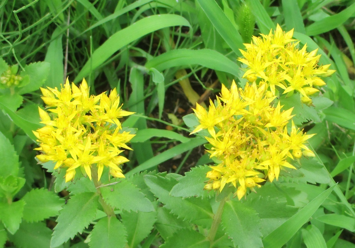 ●ホソバキリンソウ(細葉の麒麟草):麒麟草より葉が細いのでこの名になった。【生育場所】山地の草原、林内。【分布】北海道、本州(中部以北)、(国外・朝鮮、中国、モンゴル、ロシア)。【別名】ヤマ(山)キリンソウ、ミヤマ(深山)キリンソウ。