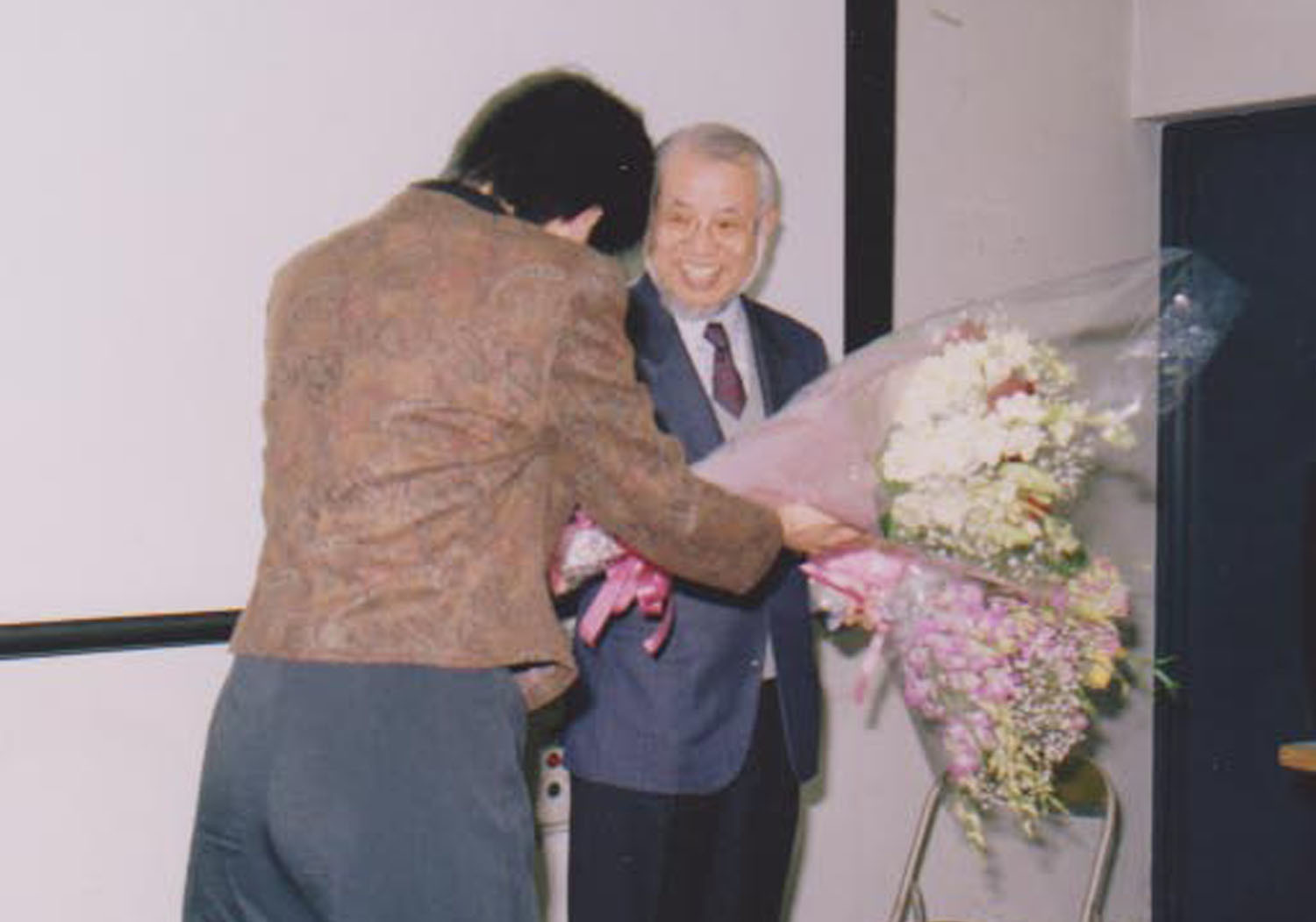 | 終わって沢山の学生さんから花束を頂いて大変うれしい日になったのをこの稿を書きながら思い出しています。しかしもしこの頃にランディ・パウシュ教授の最後の講義を知ったとしたら、私のゼミのテーマであったディズニーのアニメ論を含めて、もっとくだけた楽しいお話ができたのではないかと思い出しているのです。 | ![]() |