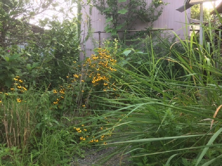 | よく虫が育つようにと雑草を生え放題にしていたら、小さな裏庭がホントに雑草だらけのジャングルになってしまいました。 | ![]() |