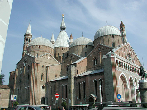 | 昼食後、早速パドヴァ市街(写真1)を南方に通り抜け、先ずはサンタントニオ大聖堂を訪れた。(写真2)パドヴァはヴェネチアよりも古くから文化・芸術が栄えた拠点であり、大聖堂の規模も大きく、内部には重要な文化遺産が保存されている。次いで大聖堂の南部に隣接している、世界最古の植物園を訪れた。(写真3)パドヴァ大学薬学部付属の薬草園として植物園は設立されたが、図書館、大学の植物収集部門も併設されており、時間の経過を忘れて見学した。 | ||