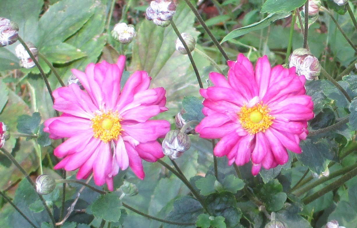 学名(Anemone hupehensis var. jaonica)Anemone(アネモネ)はギリシャ語の「風」が語源、「風の花」の意味のよう…。hupehensisは、中国湖北省産の意味、中国原産です。秋に菊に似た花を咲かせることからこの名前になった。
