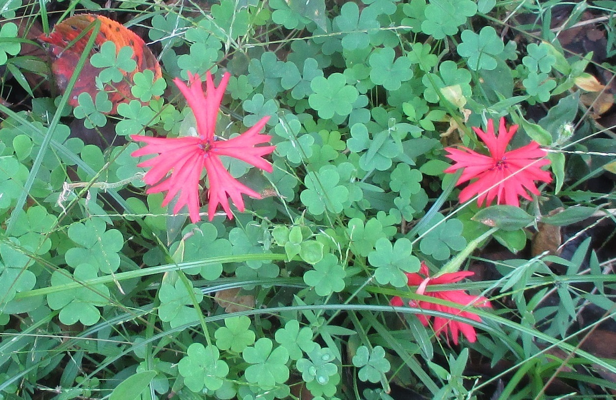 ●センノウ(仙翁):10月18日に、小石川植物園で撮影しました。ナデシコ科センノウ属。原産地=中国東部、中部、南西部。花弁の先が裂けた深紅色の5弁花。日本で初めて栽培された場所が京都の仙翁寺だったことから「仙翁(センノウ)」という名前になった。