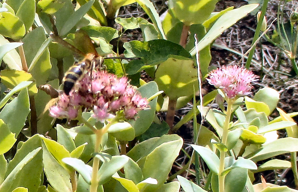 ●オオベンケイソウ(大弁慶草):10月18日に、小石川植物園で撮影しました。別名(イキクサ:活草・伊岐久佐)。原産地=東アジア。草丈が20~30cmほどの小さい草の先に咲いている花なので、ピントを合わせて撮るのが難しくピントが合っていなくて御免なさい。左側の花の先には蜜を吸っている蜂がいます。