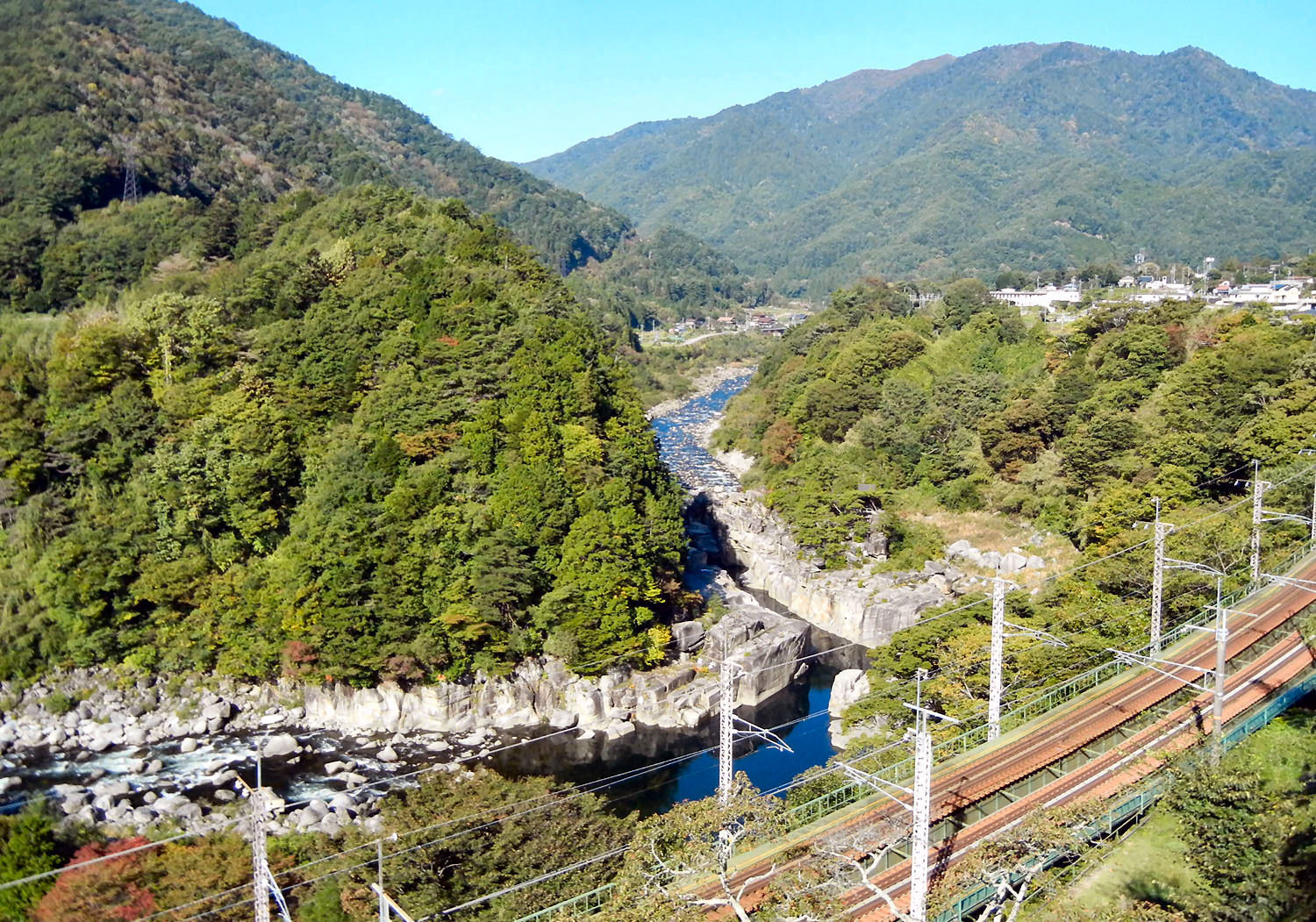 | 新宿から高速バスで4時間。降り立ったところは奈良井宿の木曽大橋の際。まず驚いたのはその大橋の下を流れる木曽川が北に向かって流れていること。はて木曽川は南に流れているはずなのに北に?そうか一旦北に流れてどこかでUターンしているのかナ。 | ![]() |