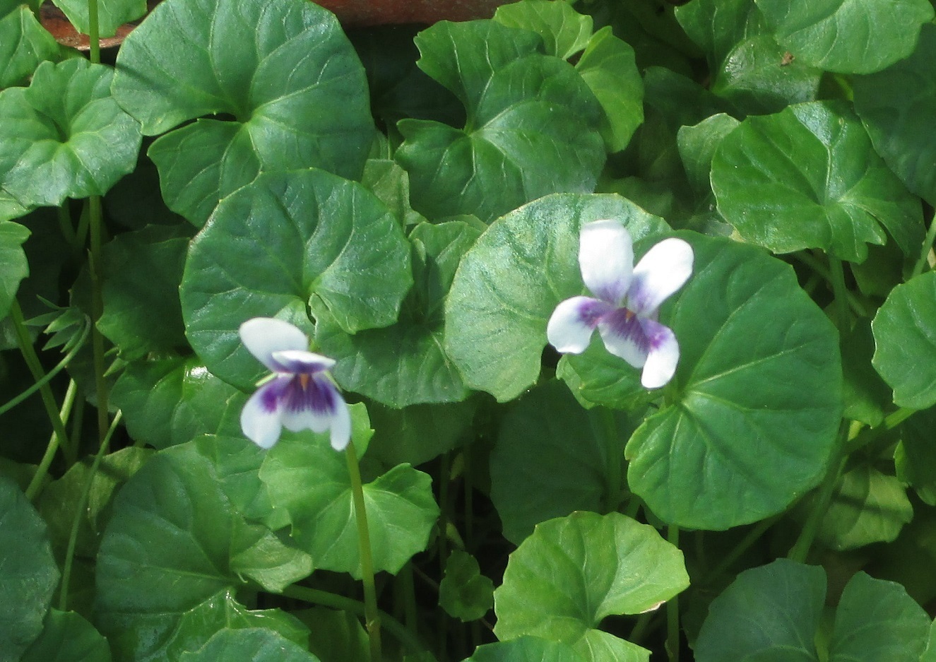 ●ツタスミレ(蔦菫):別名=「パンダスミレ(熊猫菫)」。原産地:オーストラリア、マレー半島。花は4季咲きなので、花がなくなったら、また咲いている~というように年中咲いているらしいです。花びらの中心部が紫色で先端が白く、この2色のコントラストから連想されてか、「パンダスミレ」という別名が付いた。