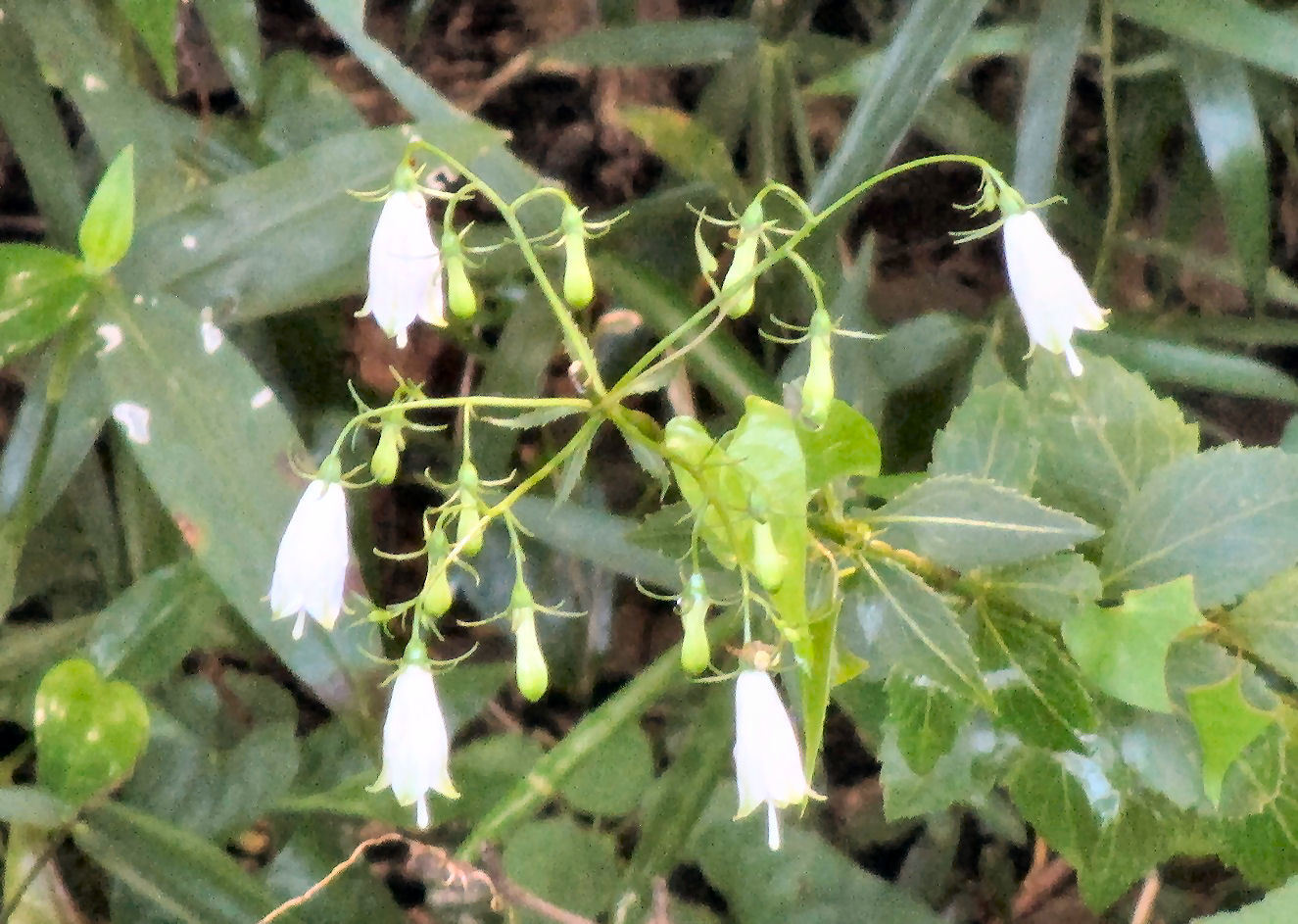 ●つりがねにんじん(釣鐘人参):花の形が「釣鐘」形で、白く太い根が人参の形に似ていることから「釣鐘人参」という。写真のピントがあっていなくて申し訳ありません。ここでいう人参とは、橙色の野菜の人参ではなく、薬草で名高い「高麗人参(朝鮮人参)」のこと。