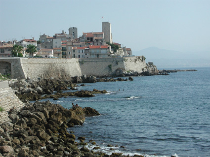 8月5日朝ニースの長距離バスターミナルを出発し、南西に進み1時間でアンティ-ブ(Antibes)のバス停に到着した。旧市街を東方に進み海岸通りに出て、東北に進みながら、グリマディ城(Chateau Grimaldi)を訪れた。(写真7)中はピカソ美術館(Musee Picasso)になっており、ゆっくりと作品の鑑賞をした。城から旧市街を見下ろすと古い家並が一望できる。(写真8)再びバス停に戻り、北西に20分進みビオット(Biot)のバス停に到着した。ビオットはガラス細工の町として知られているが、(写真9)のように瀟洒な店が立ち並んでいる。新旧入り混じって不思議な雰囲気であった。帰路はバスでアンティーブに戻り、乗り換えてニースに帰着した。