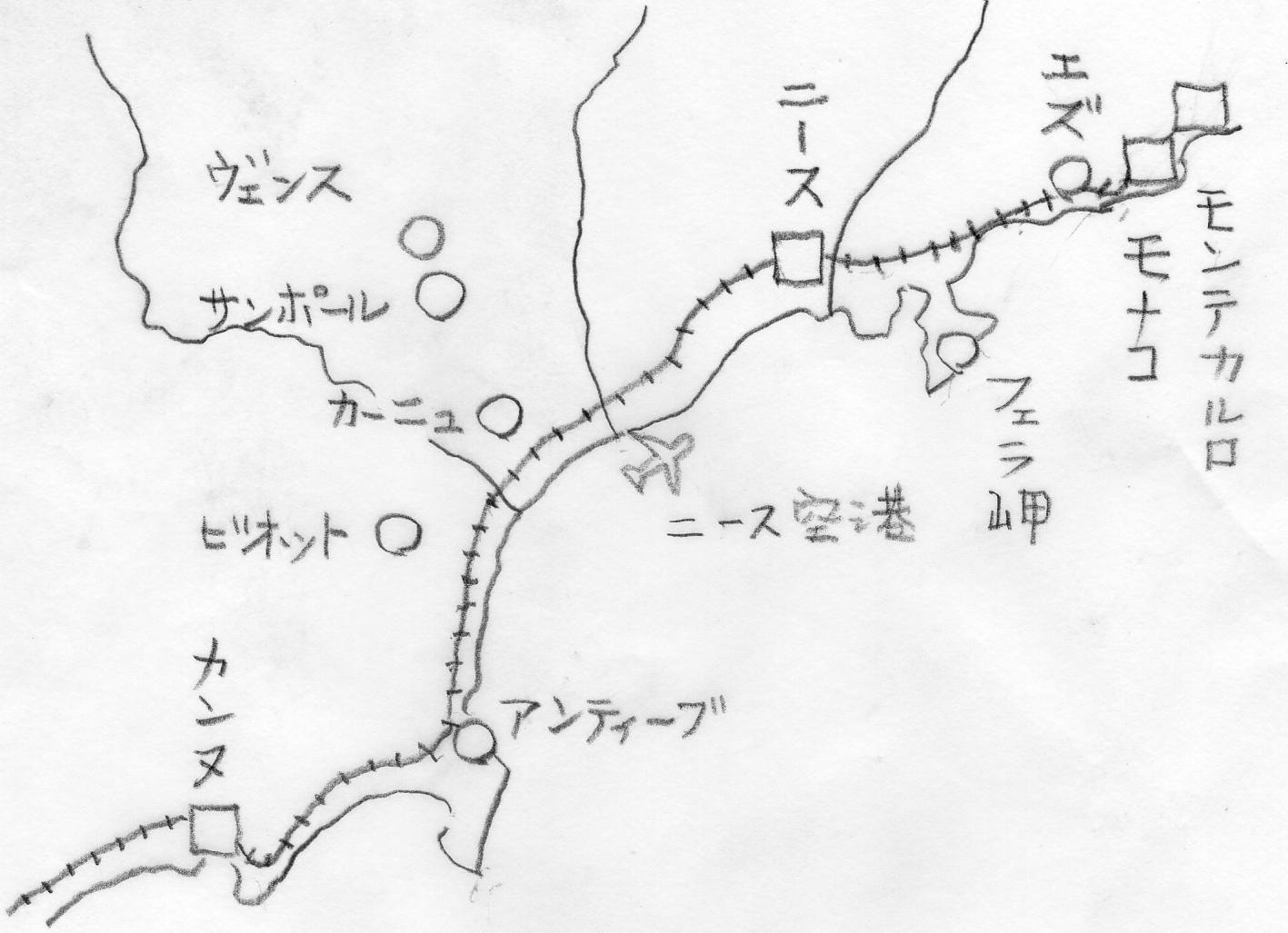 再び、バスで南東に進み、30分でカーニュ・シュル・メール(Cagne-sur-Mer)に到着した。バス停(Cagnes Station Centrale)は町の中心にあるが、北東に 2km 歩いてルノワールの家にやっと辿り着いた。(写真6)ルノワールが、愛妻の死と自身のリューマチに苦しみながら、晩年の12年間を過ごした家である。レ・コレット (小さな丘)と呼ばれる家の庭には、古い樹木が茂り、庭から見下ろすカーニュの家並は素晴らしい。時間の経過を忘れてしまい、カーニュ市街に戻った時は、グリマルディ城(Chateau-Musee Gurimaldi)を訪れる時間が無くなり残念なことをした。城の中には地中海近代美術館があり、藤田画伯の作品も展示されている。急いでカーニュ駅に戻り、18時半の列車に乗り 15分でニース駅に到着した。