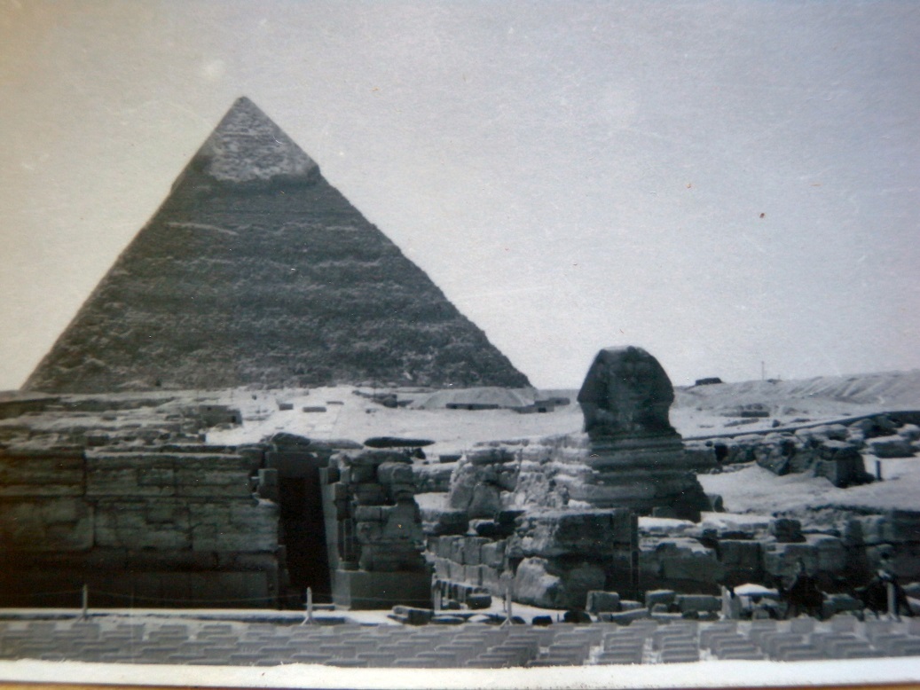 この後私たちはナイル西岸の砂漠に移動し、古代の都メンフイスの跡やサッカラの古いピラミッドを見物してからギゼへ行った。此処にはエジプト紹介には何時も登場する3基の大ピラミドとスフインクスが鎮座している。現在はその前に太陽の船を収納した展示館が立てられている様だが、私が訪れたのはその以前である。