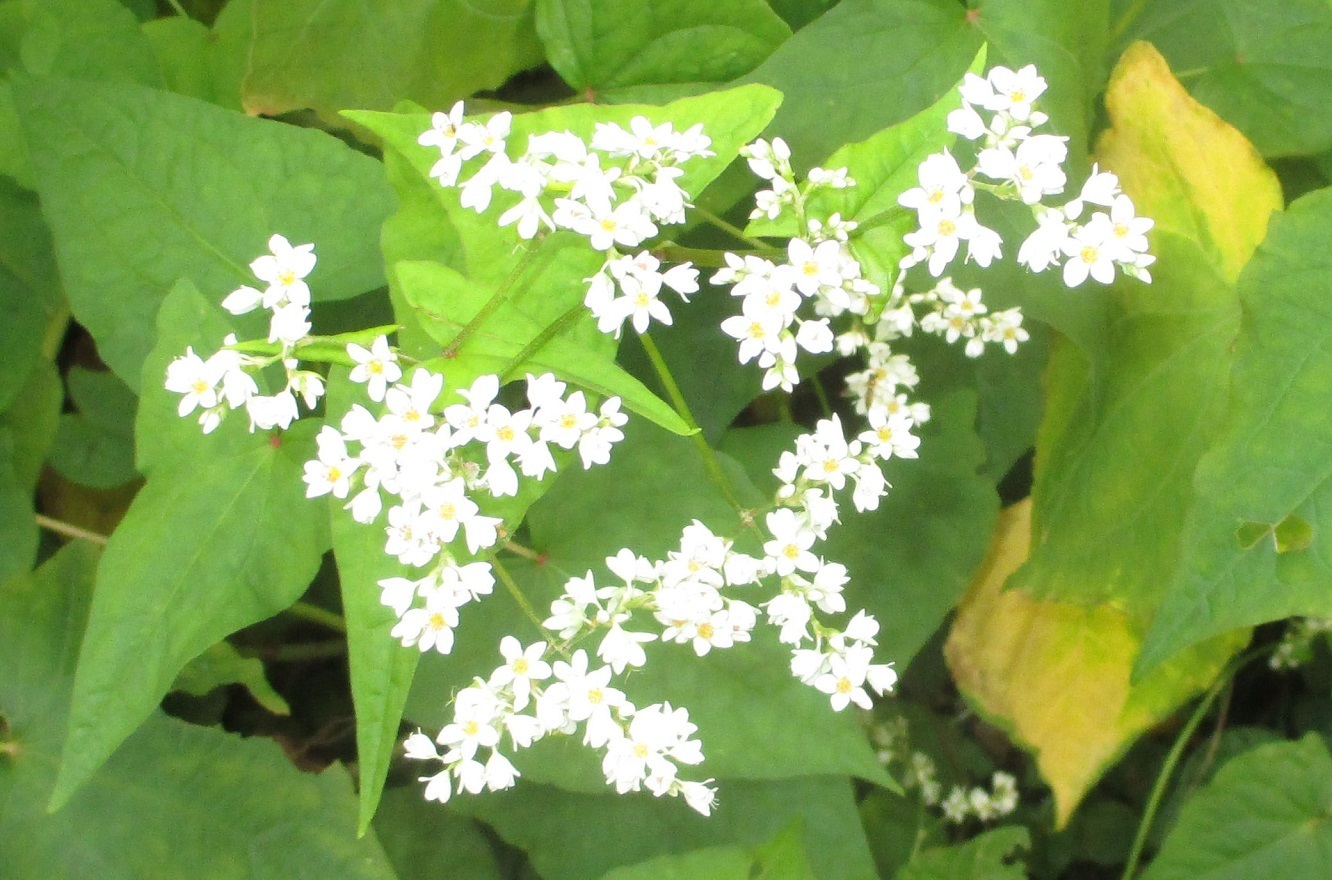 ●シュッコンソバ(宿根蕎麦):10月16日に、小石川植物園で撮影しました。たで(蓼)科の花。普通のそばは一年草、宿根蕎麦は多年草。花は夏~秋に咲く。実は三角形で黒くなり、中は白い粉。茎の根元が赤いソバということから、別名をシャチクリソバ(赤地利蕎麦)という。