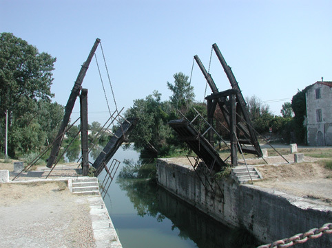 順番が来たので、女性係員に、「ヴァン・ゴッホ橋(Pont Van Gogh)に行きたい。」と尋ねると、バスの番号を教えてくれたが、日本で調べた1番ではない。念のため確認したが、多くの観光客が待っているので、間違いないと言われ、次の客の対応を始めた。仕方なく、バス停の運転手に確認したら、「1番のバスが正しい。多くのお客が間違えて、違う場所に連れて行かれる。」と教えてくれて助かった。しかし、終点 Lou Seden で下車してから、車付きリュックを引っ張りながら20分歩いて「ゴッホの跳ね橋」に到着したのは、家内と私の2人だけであった。(写真1)他の観光客は、車やリムジーンで来て、橋を撮影するとさっさと引き返した。止む無く私達は再びバス停に歩いて戻り、再びバスでアルルに帰着した。