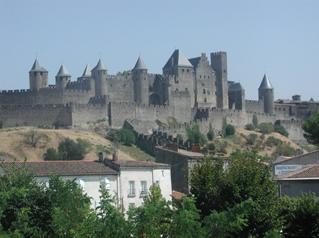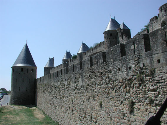 しかし、城壁から見下ろすカルカッソンヌの家並は素晴らしく、疲れを忘れさせるに十分だった。再び元気を取り戻して帰路についたが、途中で振り返って撮影した城壁の全景が(写真3)である。