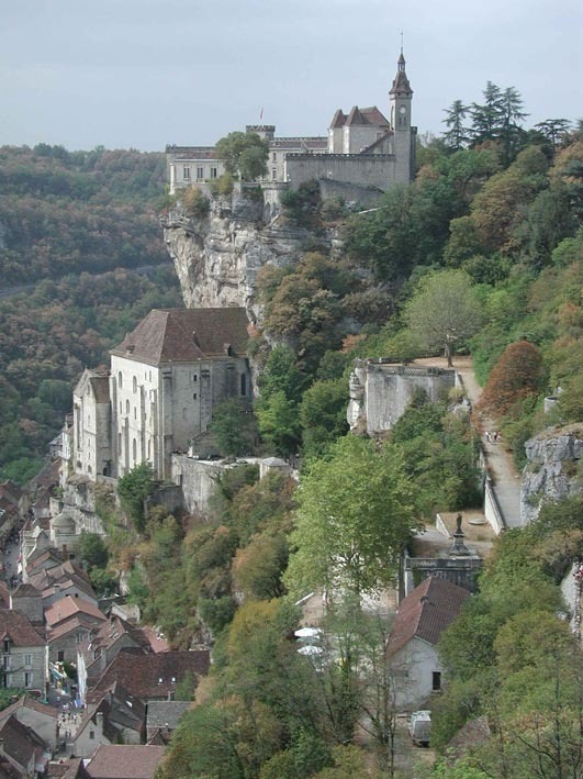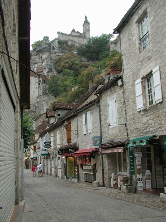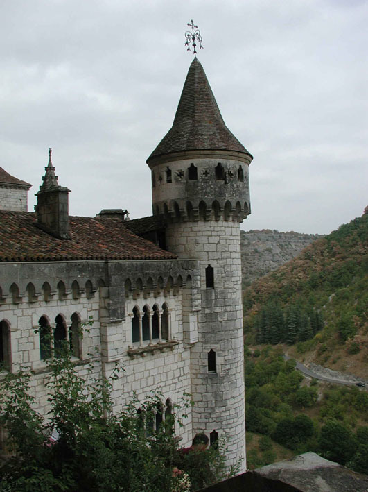 8月15日朝、フィジャック駅を8時17分に出発して列車で西北に進み、ロカマドゥール駅(Rocamadour)に 8時52分に到着した。ホテルから車が迎えに来ていたので、安心したが、駅から旧市街の麓にあるロスピタレ村(L’Hospitalet)まで6km ある。ホテルの窓から覗くと眼下はアルズー渓谷で、ドルドーニュ川に$7E6Bがる川が流れていた。早速旧市街に出かけた。(写真7)丘の上のバジリカ聖堂(Basilique St-Sauveur)を訪れ、再び見晴らし台まで降りてロカマドゥールの全景を撮影した。(写真8)旧市街を探索すると古い建物が次々現れる。一例として塔の写真を(写真9)に示す。