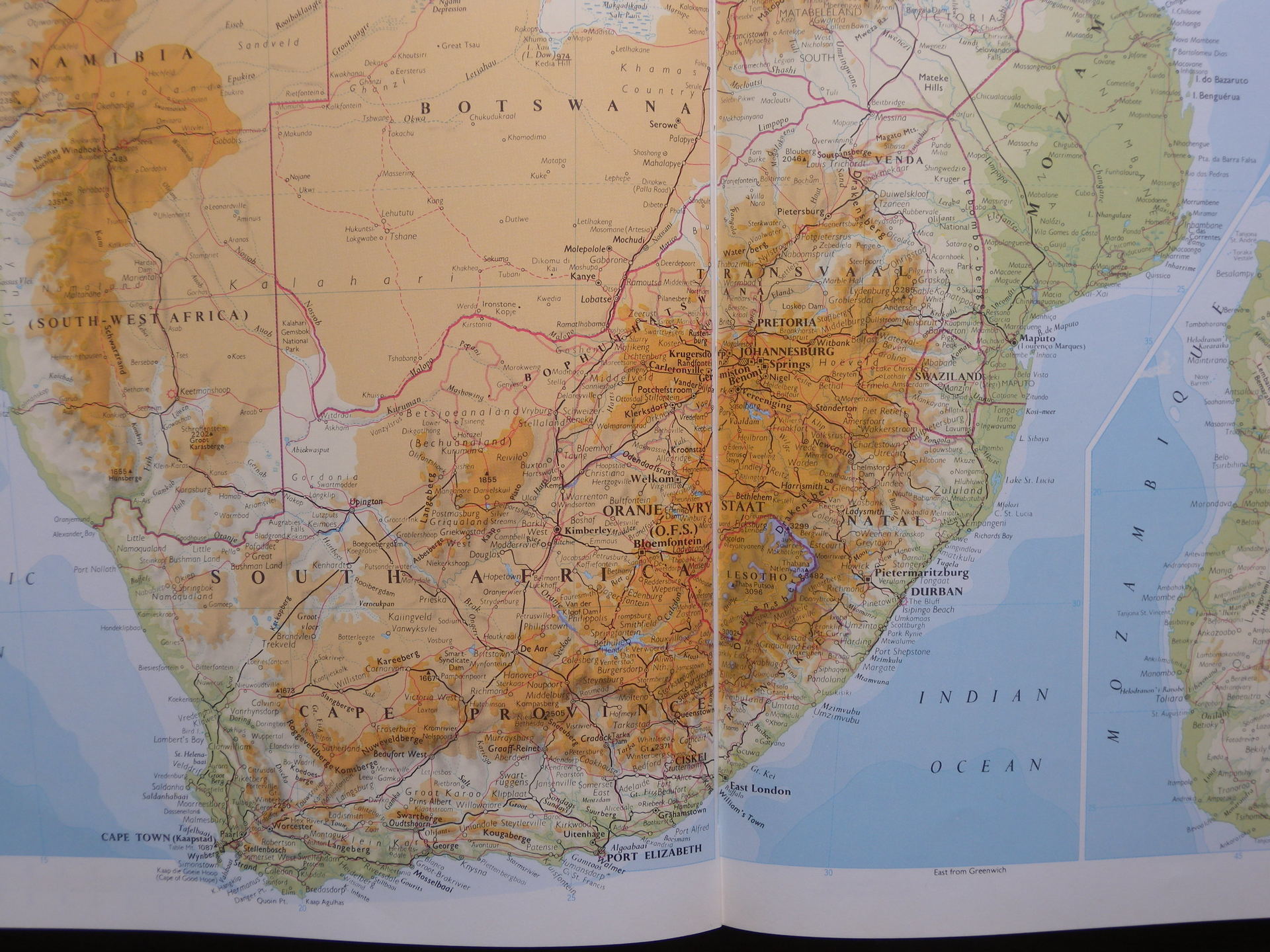 お馴染みの喜望峰とケープタウンは、この国即ちアフリカ大陸の南の端にある。当時この国でビジネスの中心であったヨハネスブルクはその中央少し上で、周辺一帯は標高約1000mの広大な台地である。